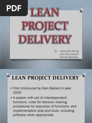 Lean is project delivery system stripping away unnecessary effort delivering what the owner values. Project Delivery Systems PDS have been defined by a variety of professional organizations. Lean Construction Institute 2000.