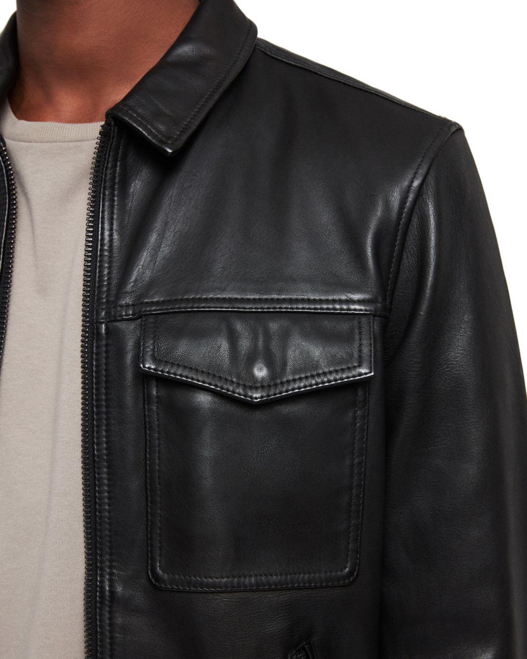 ALLSAINTS Revelry Leather Jacket. There is a zip closure long sleeve side pockets and chest pockets. Think of AllSaints leather line-up and the biker jacket may be the first piece that comes to mind but the London label dreams up something different with Revelry.